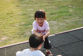 他們家旁邊除了有陽明公園外,還有一個建新公園也是挺不錯,他們經常在下午過去,便能消磨一整個下午,真是不錯,這個公園除了基本配備-溜滑梯外,我覺得很讚的是,它有一個迷人的迷宮,用矮樹叢形成的,方便小蟲們,鑽來鑽去,更讚的是,它還是一處砂石場,不,砂石遊樂場,地面上有無數的砂石,以前小孩子。看到小石頭,都一定想拿來丟(果然是石器時代,人類留存下來的習性),一定會得到我們的制止,但是這裡,他們愛怎麼丟,就怎麼丟,只要不要丟到人,滿足他們的史前孓留的劣根性。